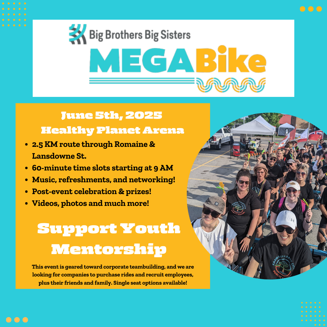 On Thursday, June 5th, the MEGABike stopped by Peterborough, at the Healthy Planet Arena parking lot for a legendary 29-person ride in support of Big Brothers Big Sisters of Peterborough’s youth mentoring programs!